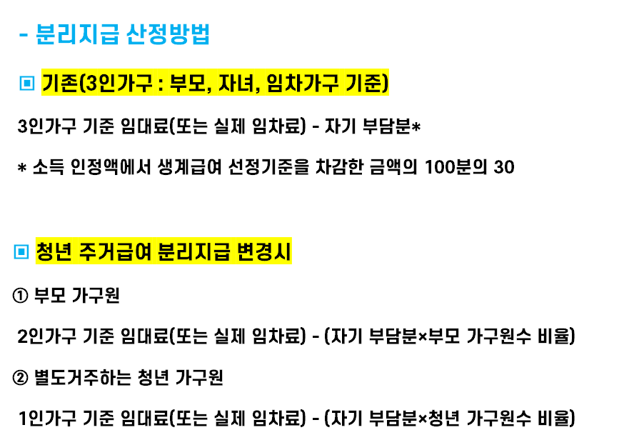 청년 주거급여 분리지급은 기존 주거급여 수급가구 내 20대 미혼 자녀가 학업이나 구직 등을 목적으로 부모와 따로 거주하는 경우, 자녀에게 주거급여를 지급하는 제도입니다.