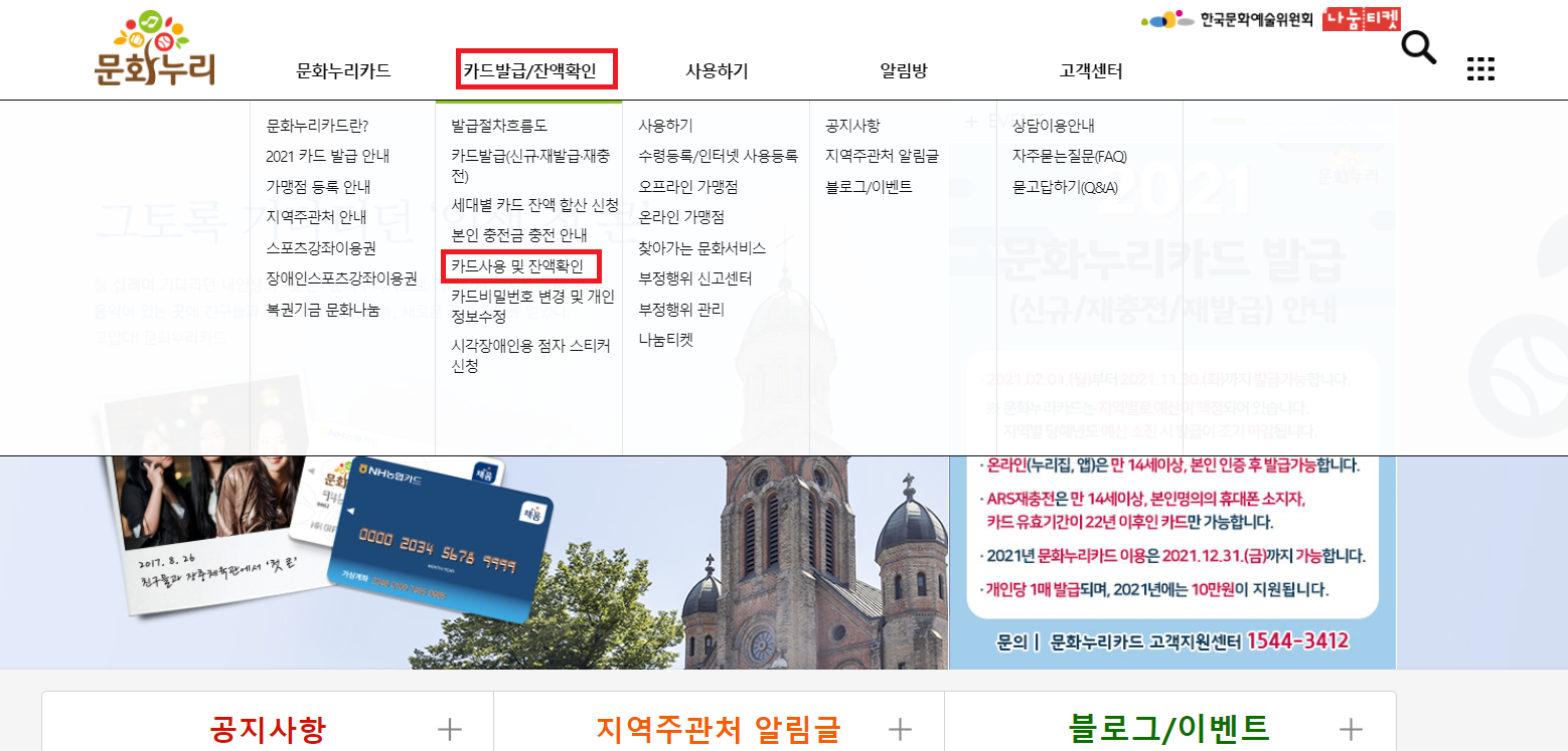 이 때 문화누리카드 잔액을 확인할 수 있는 방법이 있습니다.