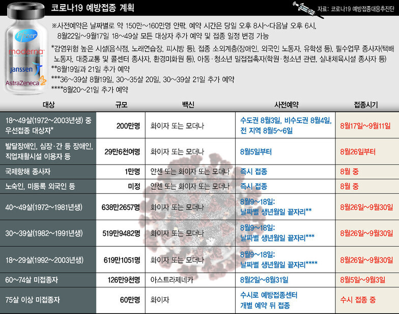 : 최근 4차 대유행의 중심이 되고 있는 20~40세대. 과연 언제부터 백신 접종이 가능할까요?