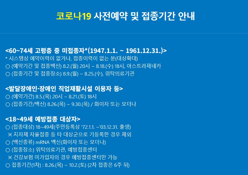 - 8월 21일 20시 ~ 9월 18일 18시 : 18~49세 모든 대상자 추가 및 예약 변경 가능