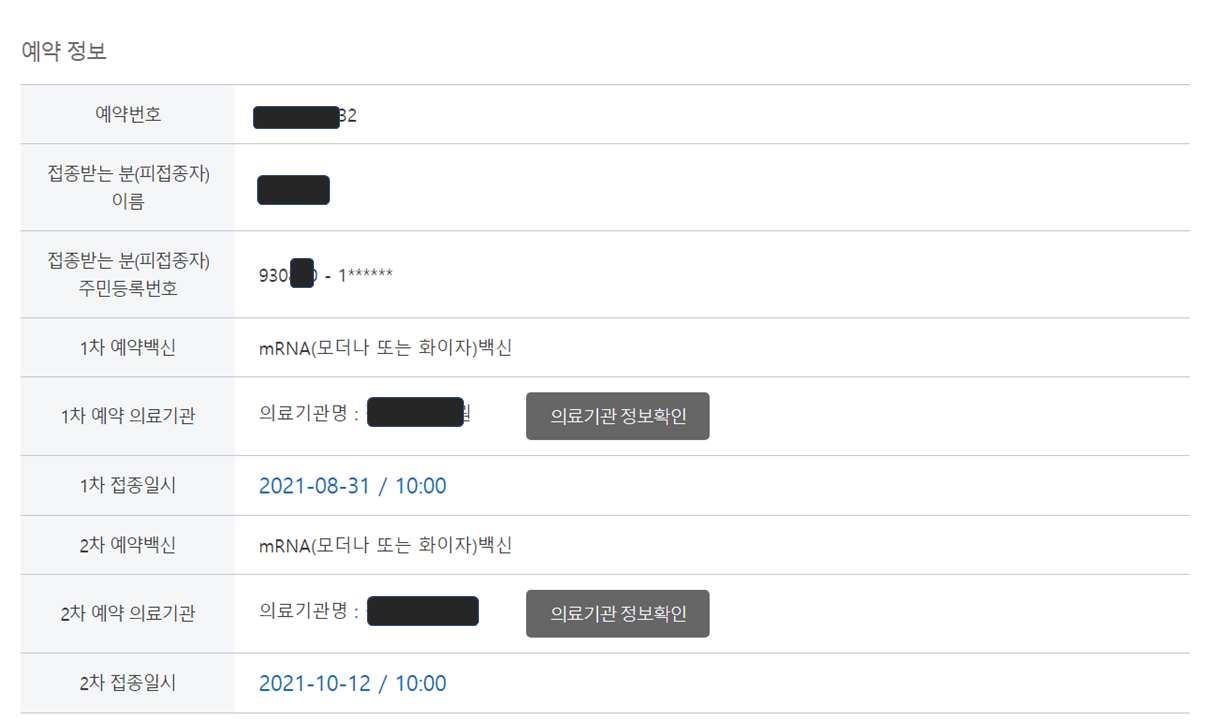 1차 백신 일정을 잡아 예약하면 2차 백신 접종 일정이 자동으로 잡힙니다.
