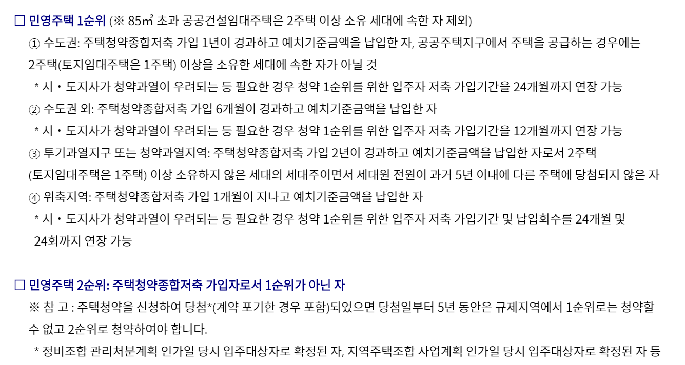 주택청약 1순위 조건에 대해서는 글 하단에서 자세히 다루도록 하겠습니다.