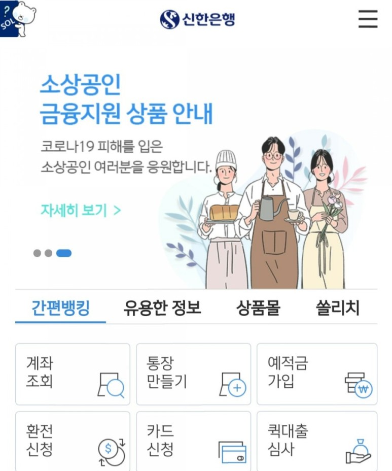 신한은행 모바일앱(신한쏠SOL) 회원가입 후 신청할 수 있습니다.