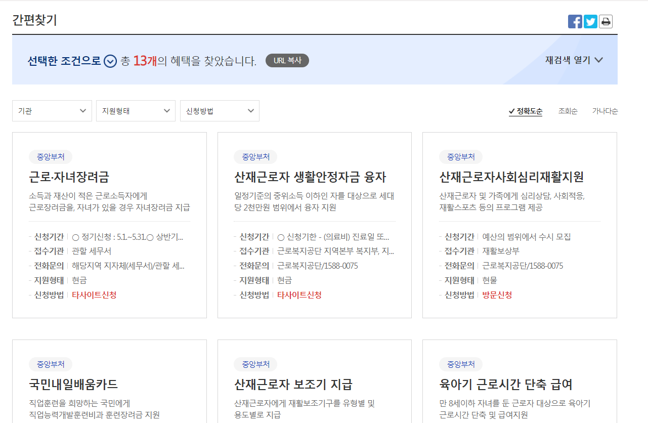 보다 정확하고 다양한 정부 지원 혜택을 확인하실 분들은 바로 아래에 있는 '간편찾기'를 이용하시면 됩니다.