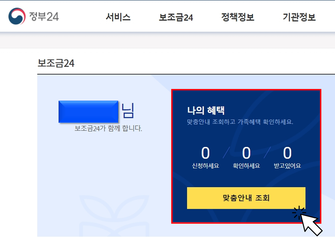 3. 현재 내가 받을 수 있는 '정부혜택'을 확인하고 신청하면 완료!
