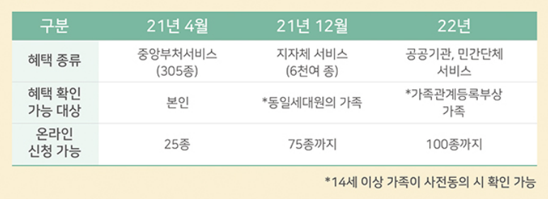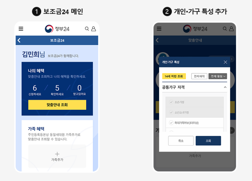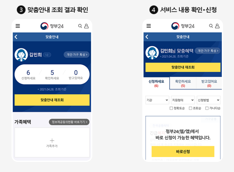 또한 본인을 비롯하여 함께 거주하고 있는 가족의 서비스까지 확인할 수 있도록 ‘보조금 24’ 맞춤 안내 대상자가 점차 확대될 예정입니다.