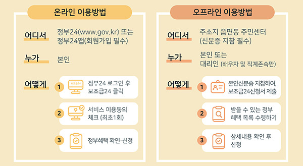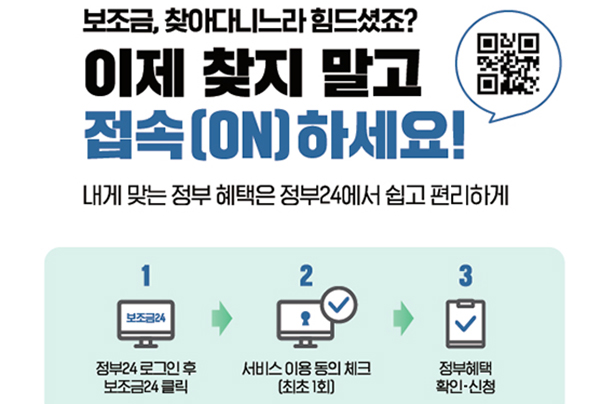 이 외에도 몸이 불편해서 거동이 어려운 주민과 위기가정 등을 대상으로 ‘찾아가는 보조금24’ 서비스도 제공합니다.