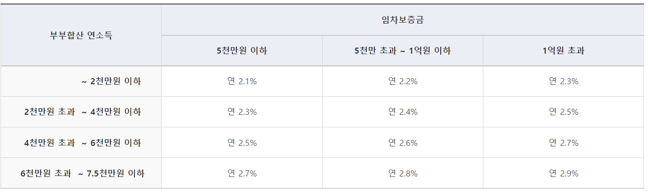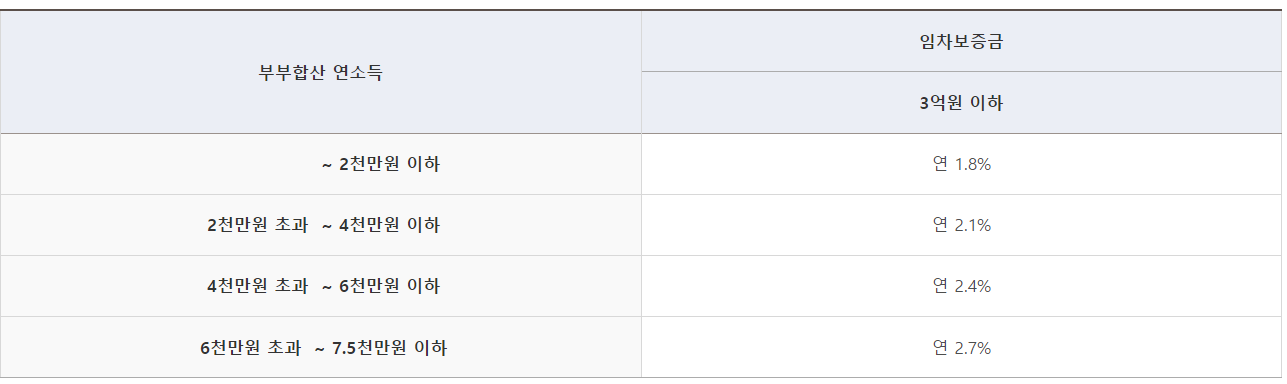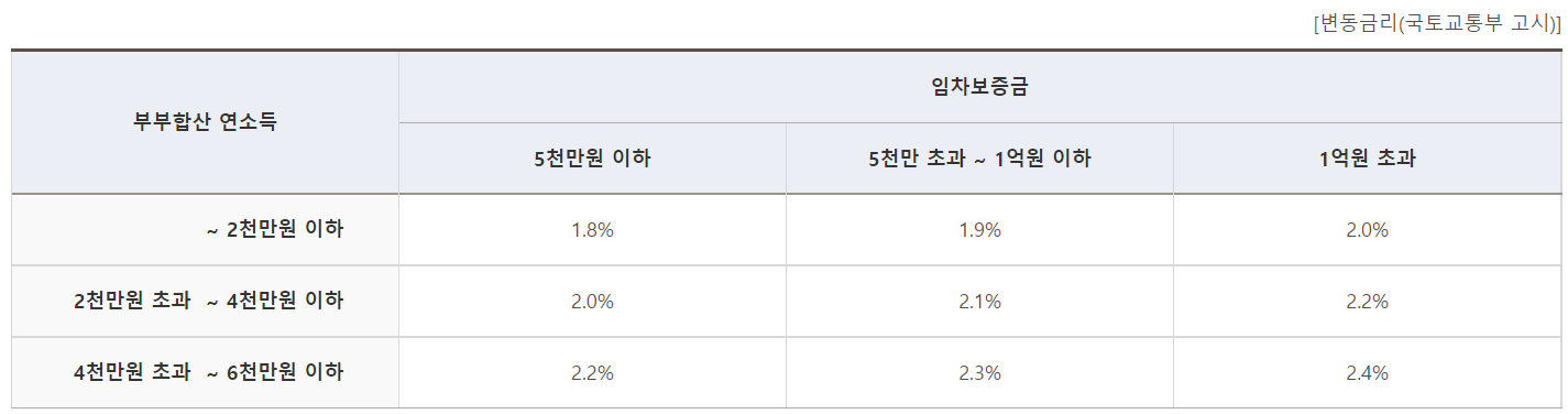 : 대출금리는 부부합산 연소득 구간에 따라 조금씩 차이가 있습니다.