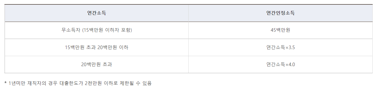 단, 1년미만 재직자의 경우에는 대출한도가 2천만원 이하로 제한될 수 있습니다.