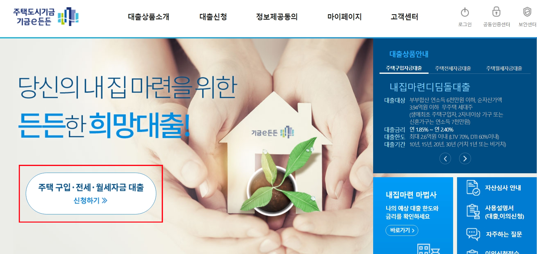 주택도시기금e든든(enhuf.molit.go.kr)에 접속하여 로그인하시고, 안내에 따라 진행하시면 됩니다.