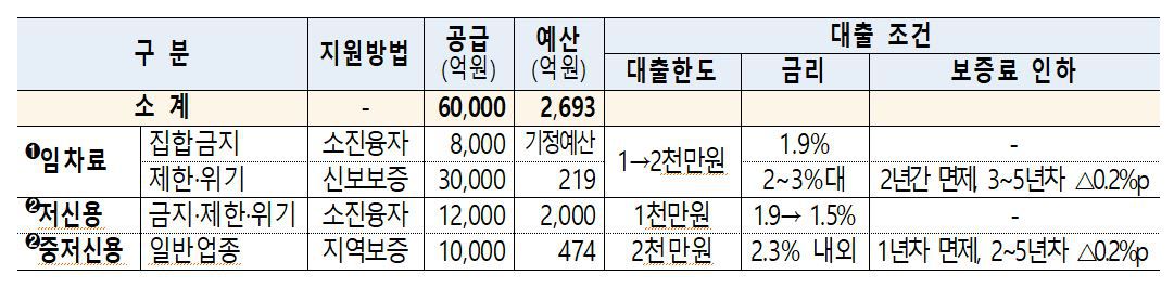 희망회복자금 지급대상