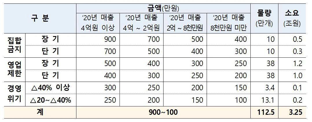 당초 최대 900만원을 지급하기로 했으나 소상공인의 경제적 어려움 등을 고려하여 최대 2천만원까지 지급 폭을 확대 했다고 하네요.