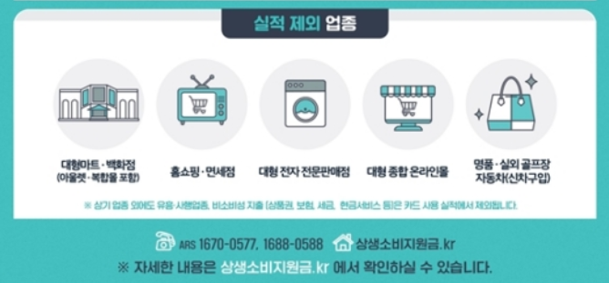 💄 대형마트, 대형 백화점(아울렛, 복합몰 포함), 대형 전자판매점, 대형 종합 온라인몰, 명품전문매장, 신차구입, 유흥업종 등도 제외됩니다.