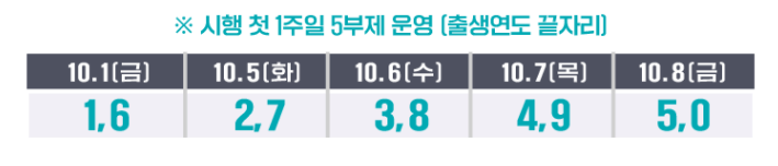 10월 1일부터 신청이 시작되며, 1·6년생, 5일은 2·7년생, 6일은 3·8년생, 7일은 4·9년생, 8일은 5·0년생 순입니다.