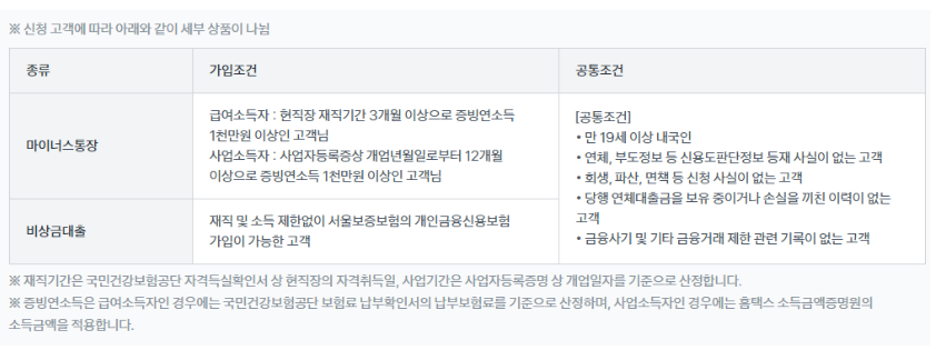 다만 비상금대출과는 달리 직장인의 경우 현 직장에서 재직기간이 3개월 이상되었고, 증빙 연소득이 1,000만원 이상인 분들에 한 해서 가능한 상품입니다.