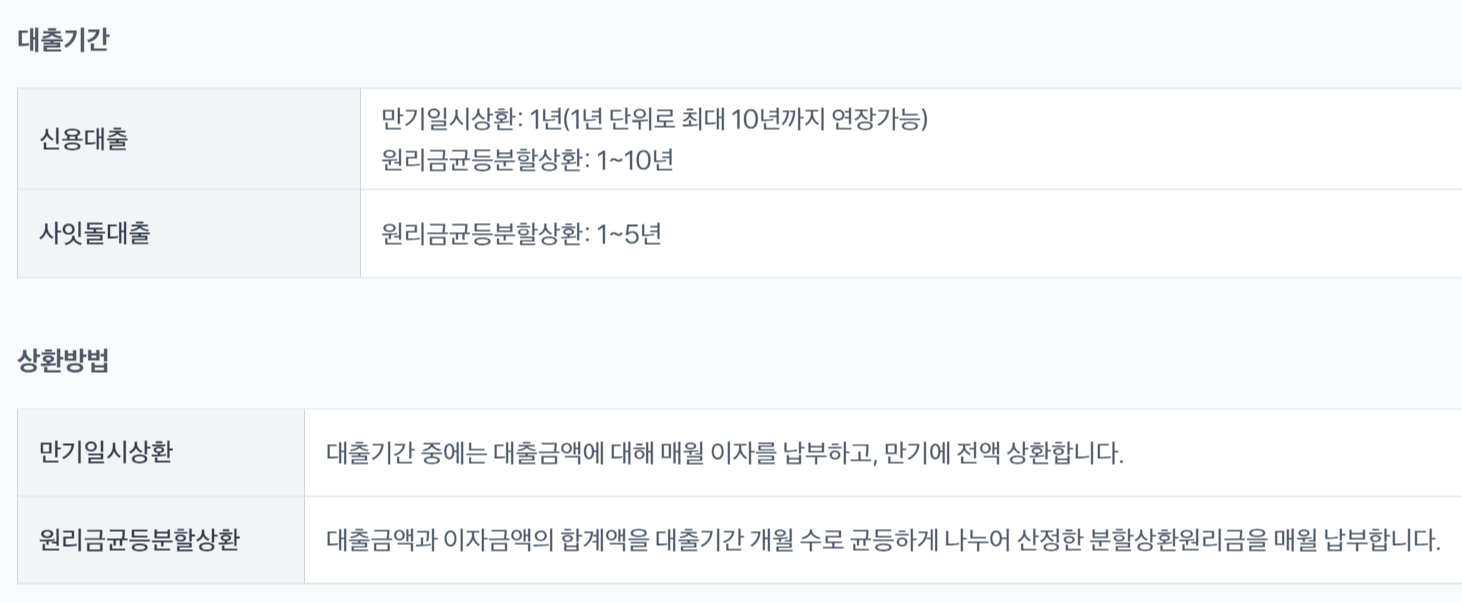 ✅ 대출기간 및 상환방법
