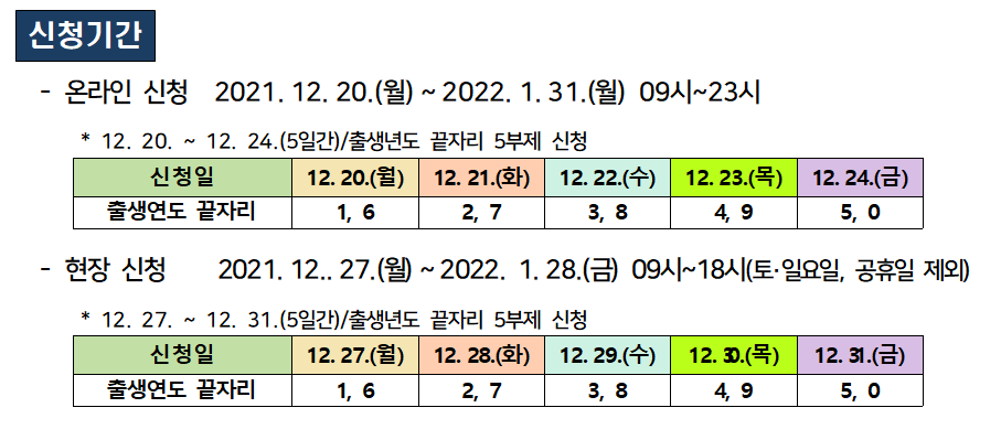 ◈ 오프라인 방문 신청 : 신분증 지참하여 동 행정복지센터에 신청서 작성 후 신청