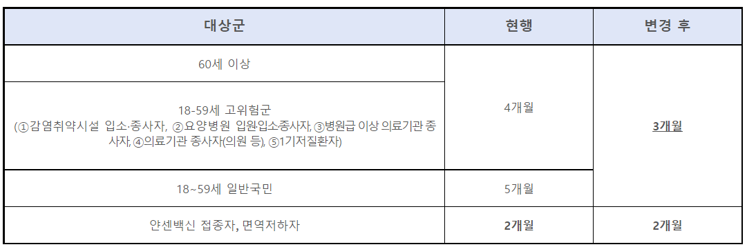 * 단, 얀센백신 접종자와 면역저하자는 2개월 유지