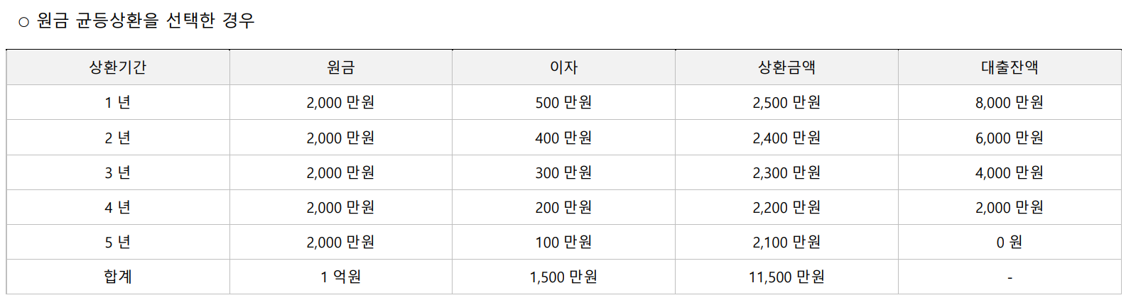 ∙ 원(리)금균등분할상환 : 1~5년