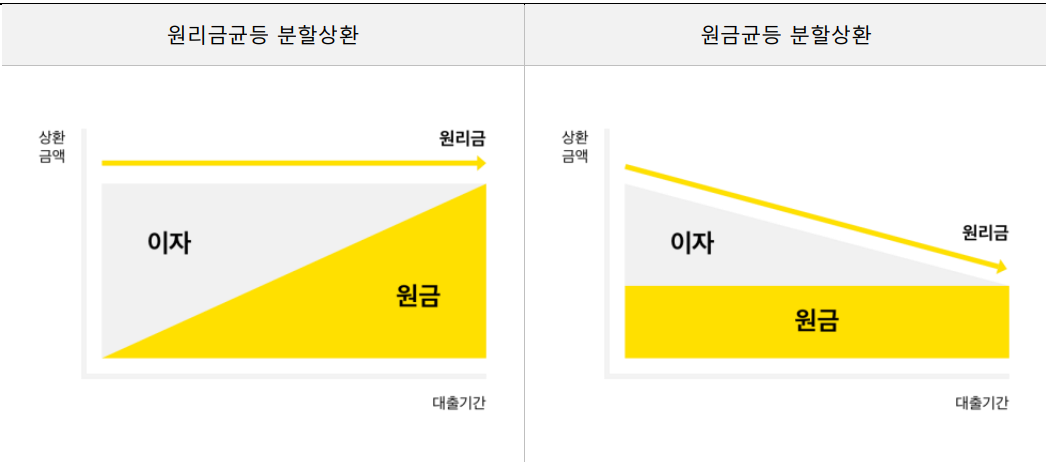 🔶 상환방법 : 원금균등 분할상환 / 원리금균등 분할상환