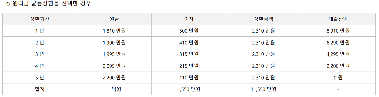 ∙ 원(리)금균등분할상환 : 1~5년