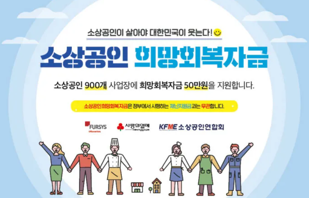 이번 희망회복자금은 소상공인연합회에 신청한 소상공인들을 대상으로 사업자당 최대 50만원씩 지원됩니다.
