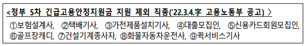 참고로 정부 5차 긴급고용안정지원금 지원 제외 직종은 다음과 같습니다.