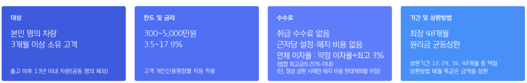 첫 번째로 소개해드릴 상품은 현대 캐피탈에서 출시한 자동차담보대출입니다.