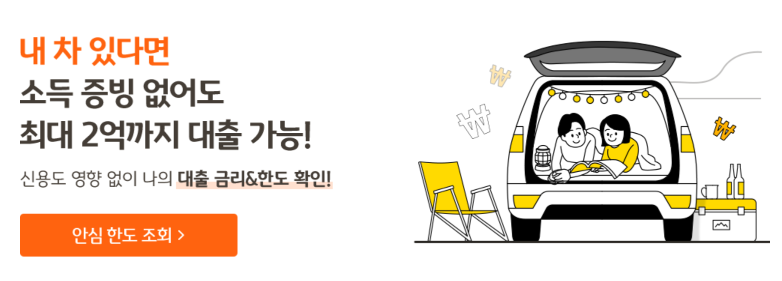 이럴 때 본인 명의의 자차를 소유하고 계신 분들은 자동차 담보대출을 고려해볼 수 있는데요, 자동차담보대출은 시중에 존재하는 신용대출보다 보통은 금리가 낮은 편이라 좀 더 유리한 조건으로 대출받을 수 있습니다.