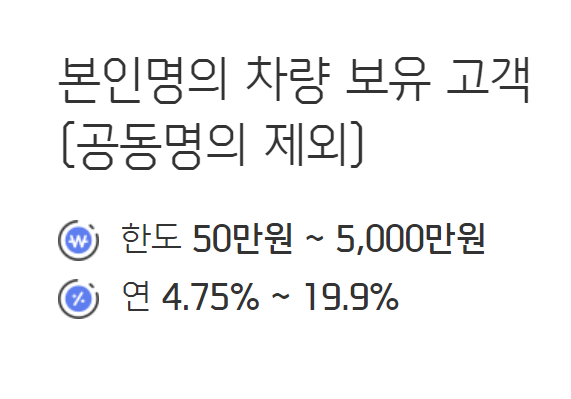 신용등급은 7등급 이상이고, 본인 명의의 차량을 갖고 있어야 합니다.