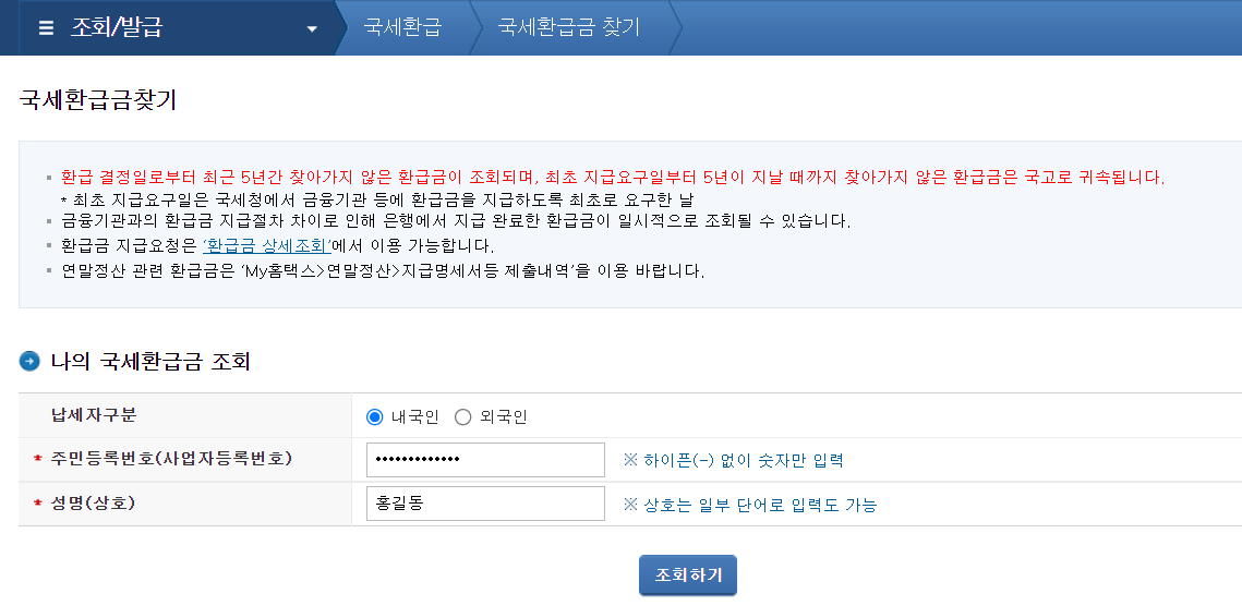 국세환급금은 홈택스 홈페이지를 통해 조회 및 환급이 가능합니다.