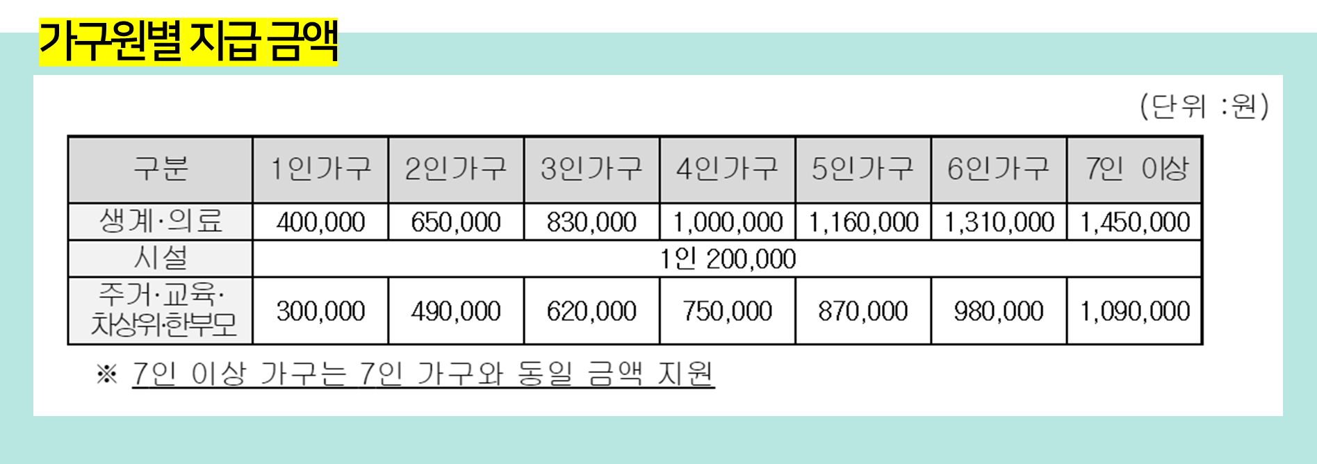 📌 가구원별 지급 금액