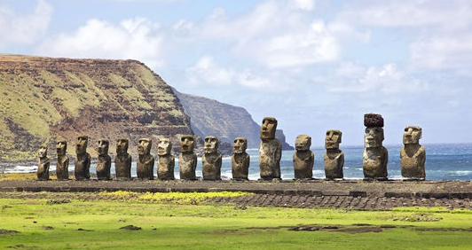 모아이 석상은 칠레 이스터 섬에 있는 사람 얼굴 모양의 석상인데요, 크기는 최소 3.5m부터 20m까지 다양하고 무게는 개당 20t에서 90t까지 나갑니다. 우선 참고로 이스터섬은 동남 태평양의 폴리네시아에 위치한 칠레령의 섬으로, 모아이(Moai) 석상 유적으로 널리 알려져 있는 섬 입니다. 이렇게 다양한 크기의 석상들이 이스터 섬 전체에 600개 이상이 흩어져 있는데 신기한건 수 많은 석상들이 모두 한 방향을 향해 서있다는 것입니다.