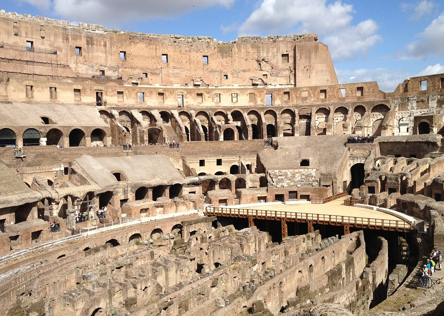 콜로세움은 약 2,000년 전 고대 로마 제국 시대에 만들어진 원형 경기장입니다. 서기 70년 베스파시아누스 황제가 짓기 시작해 10년뒤 그의 아들인 티투스 황제가 완공한 콜로세움은 당시 지어진 건축물 중 높이 48m, 폭 2,355m로 가장 규모가 컸습니다. 또한 지하에 비밀스러운 공간도 있었는덴 이 지하시설은 노예들의 휴식공간과 맹수들을 사육하는 장소로 쓰였다고 합니다. 경기장에선 주로 서커스나 맹수간의 싸움, 그리고 가장 인기 있었던 당대 최고 검투사들의 치열한 대결이 주를 이뤘는데, 때에 따라 사형을 집행하거나 공개처형 하는 등 백성들에게 공포심을 심어주기 위한 정치적인 목적의 장소로도 쓰였습니다.