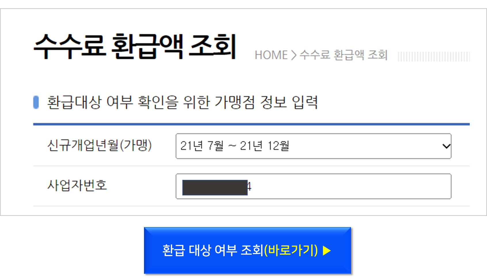 위 3가지 조건에 모두 해당하시는 사업자 분들은 아래에서 카드수수료 예상 환급액을 조회해보시기 바랍니다.