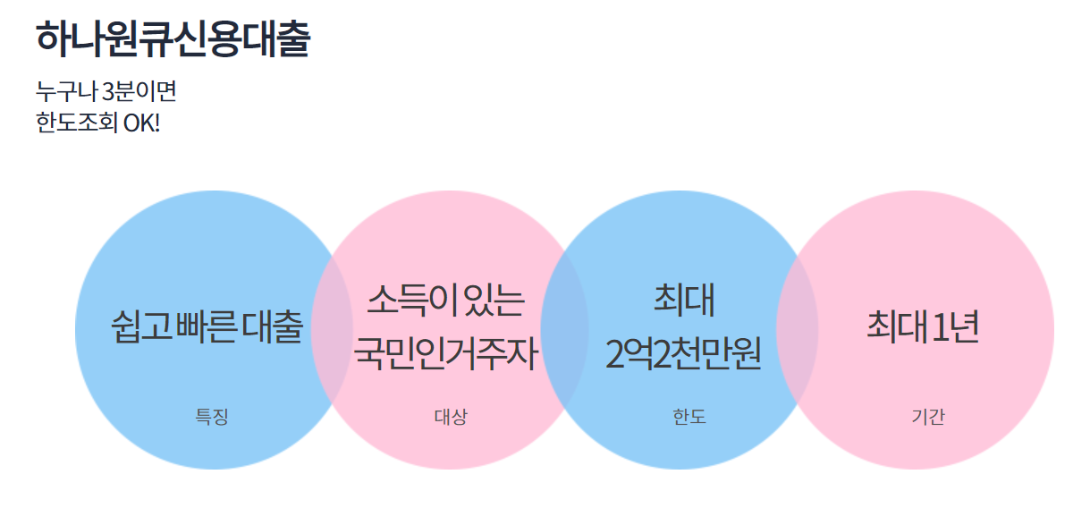 다음 소개해드릴 상품은 하나은행에서 출시한 신용대출 상품으로 누구나 간편하게 한도조회가 가능합니다.