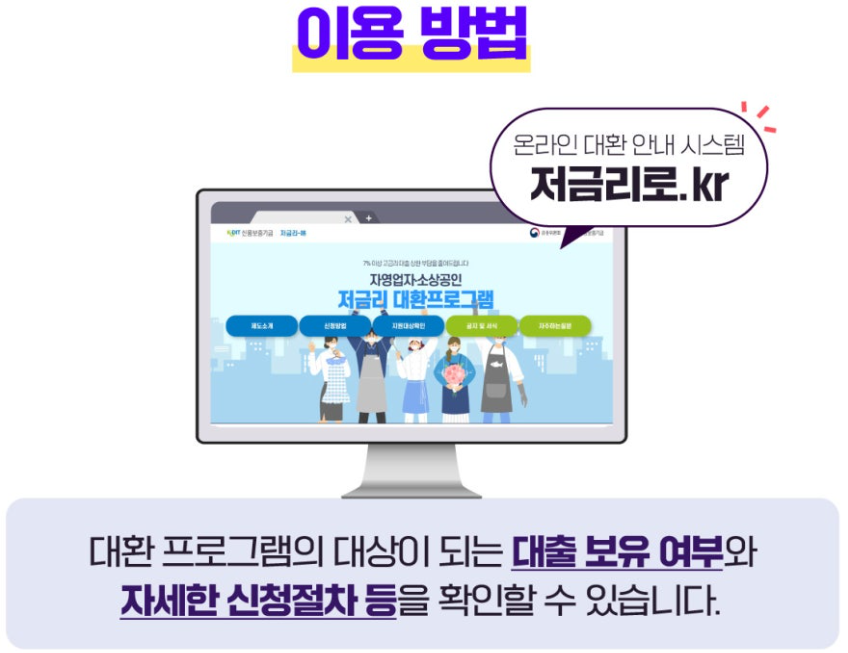또한 저금리로.kr 에서 간편하게 온라인 신청도 가능하니 아래 링크 참고하시기 바랍니다.