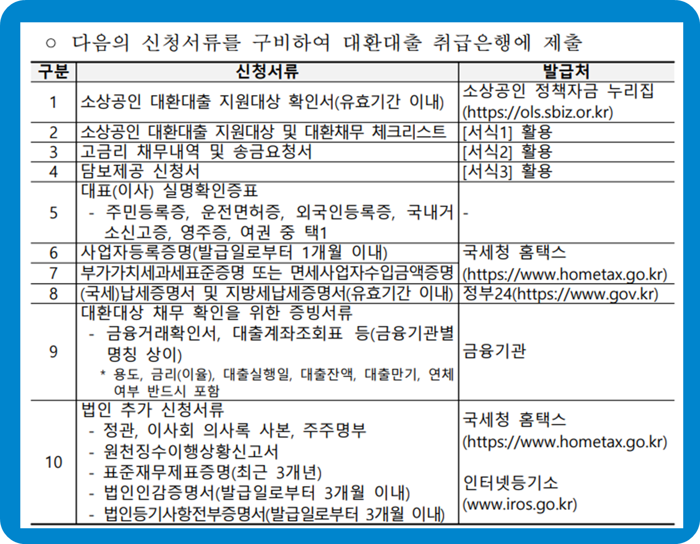 📌 소상공인 대환대출의 경우 당초 올해 말 까지 진행 될 예정이었으나 신청기간을 2024년 말 까지 연장하였습니다.