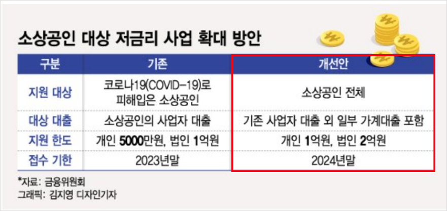 이와 더불어 고금리 가계신용대출을 받아 사업용도로 지출한 자영업자들도 저금리 대환 프로그램이 적용됩니다.