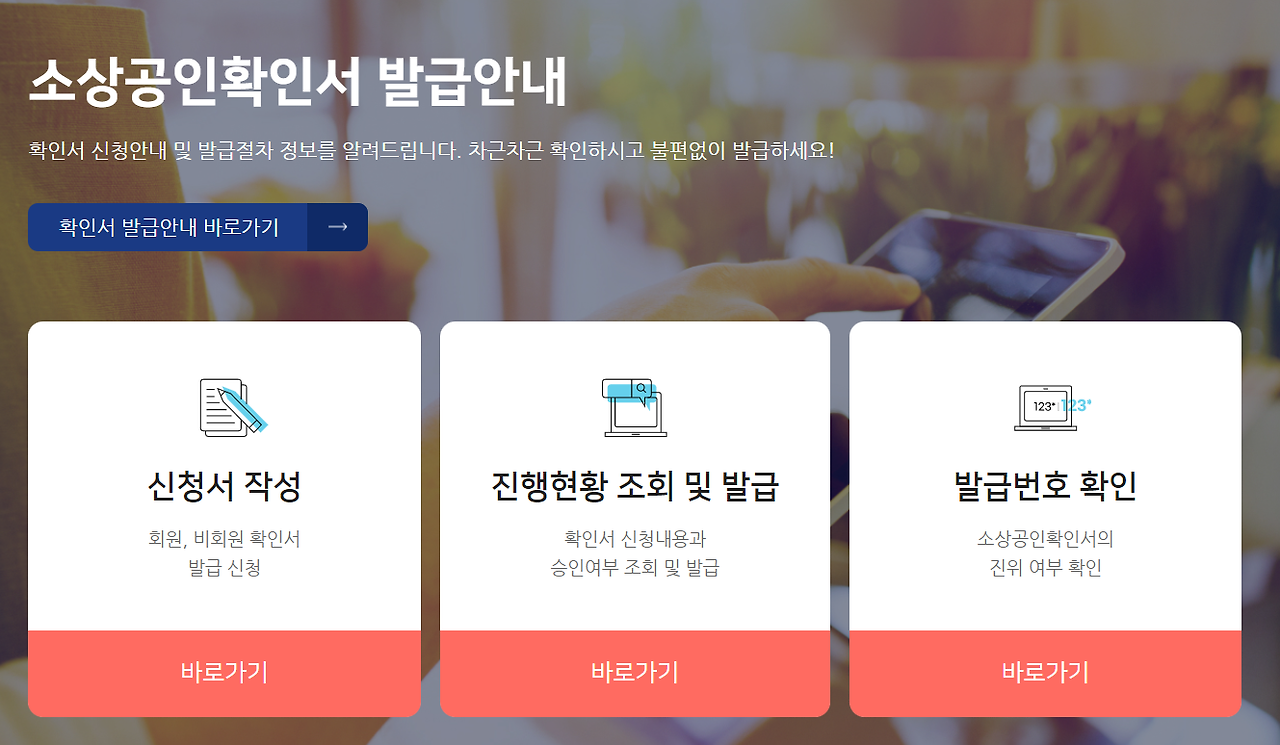 ◦ 소상공인 정책자금 누리집(https://ols.sbiz.or.kr)에서 “소상공인 대환대출 확인서 발급신청” 팝업창 클릭을 통해 온라인 신청 및 발급이 가능합니다.