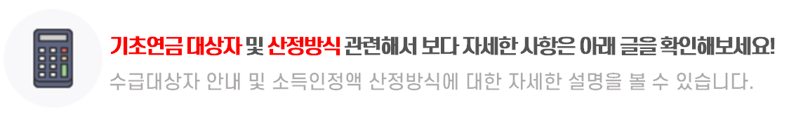 * 공무원연금, 사립학교교직원연금, 군인연금, 별정우체국연금 수급권자 및 그 배우자는 원칙적으로 기초연금 수급대상에서 제외됩니다.