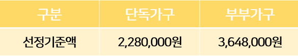 2025년 선정기준액(소득인정액)은 단독가구 : 2,280,000원 / 부부가구 : 3,648,000원으로 2024년 대비 약 7%가 증가했습니다.