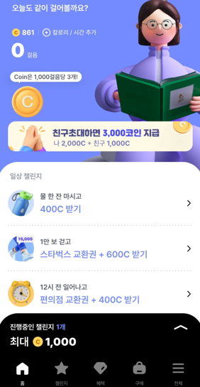 1,000걸음당 3코인을 얻을 수 있는데요, 은근 빨리 모여서 금방금방 쌓이더라구요.