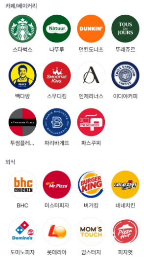 코인을 현금화 하여 스타벅스, 파리바게뜨, 버거킹, 네네 치킨, BHC, 편의점, 모바일 상품권 등 유명 브랜드의 상품을 구매할 수 있는데요, 계속해서 제휴업체가 증가하고 있어 사용 범위도 늘어나는 추세라고 합니다^^