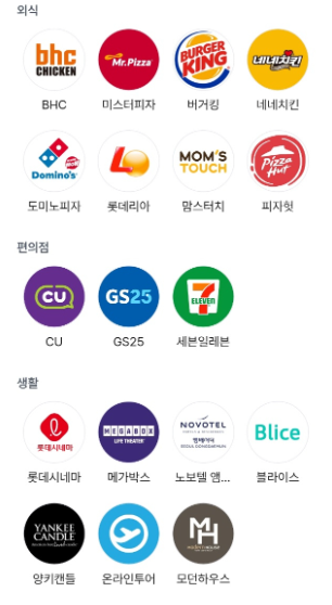 코인을 현금화 하여 스타벅스, 파리바게뜨, 버거킹, 네네 치킨, BHC, 편의점, 모바일 상품권 등 유명 브랜드의 상품을 구매할 수 있는데요, 계속해서 제휴업체가 증가하고 있어 사용 범위도 늘어나는 추세라고 합니다^^