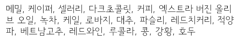 서트푸드란 우리 체내의 단백질 성분인 '시르투인'을 활성화하는 폴리페놀 성분이 풍부하게 들어있는 음식을 일컫습니다. 서트푸드 음식으로는 다음과 같은 음식들이 있습니다.