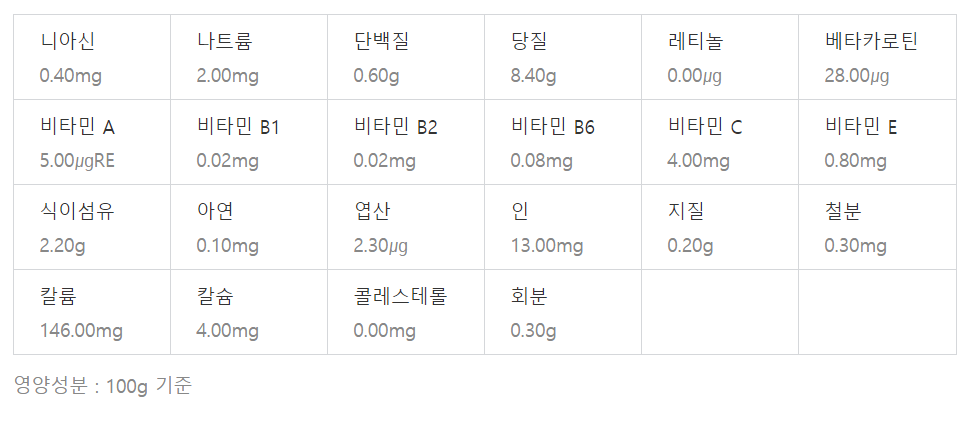 · 효능 : 변비 예방 (펙틴이 풍부하여 변비 예방에 효과적)