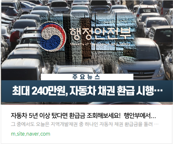 신차던, 중고차던 간에 차 구매한지 5년이 지났으면 행안부에서 지급하는 자동차 환급금 대상자에 포함됩니다.